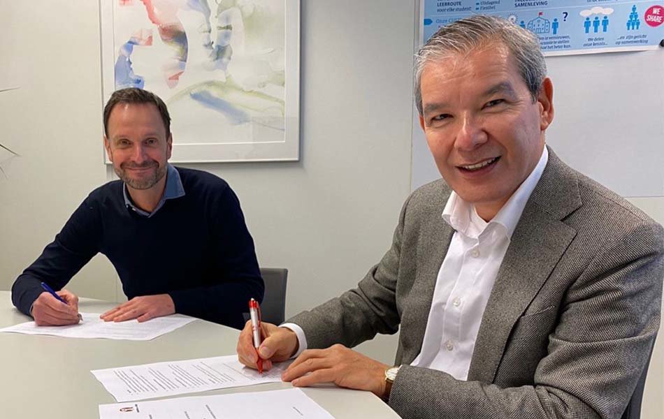 Directeur Kees Stolwijk (Windesheim Almere) en oprichter Wilfred Fischer (Academie van de Stad) tekenden vandaag de samenwerkingsovereenkomst. Wij kijken ernaar uit om de komende jaren samen met Windesheim Almere nog meer positieve impact te maken in de stad Almere!