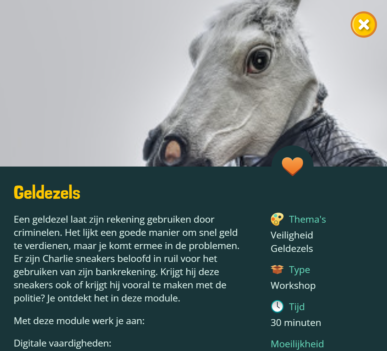 Er wordt een ervaringsgerichte tool voor LVB-jongeren en hun begeleiders ontwikkeld waarin zij in een veilige omgeving kunnen ervaren wat een geldezel is, op welke manier zij hiertoe verleid kunnen worden, en krijgen concrete handvatten hoe zich te beschermen.